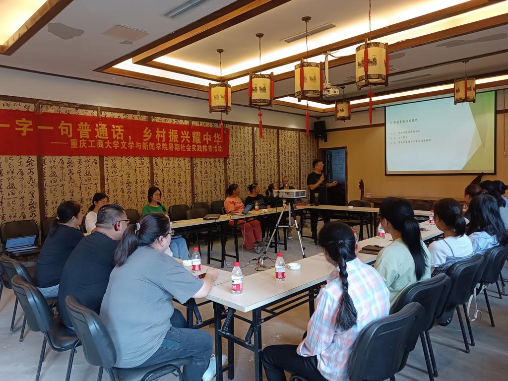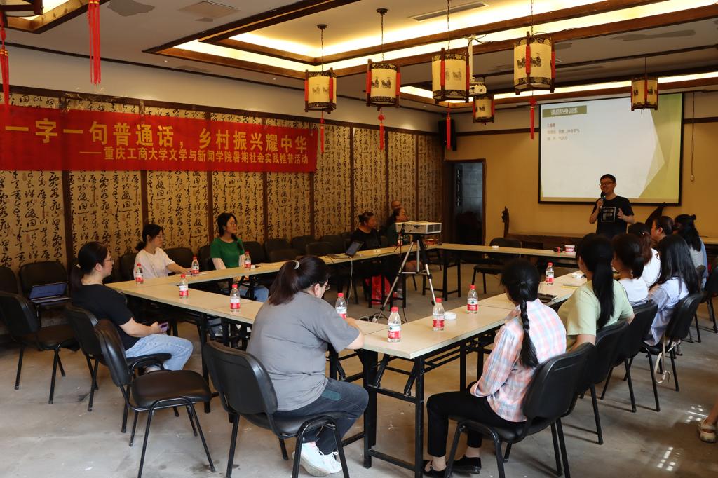 为深入学习贯彻宣传党的二十大精神,贯彻落实习近平总书记关于教育的重要论述和关于语言文化的重要指示批示精神,加大国家通用语言文字推广力度,助力乡村振兴战略实施,以实际行动提升当地语言文化素养。7月7日上午,重庆工商大学文新学院“文小闻”发展成就观察团在巴南区丰盛古镇“十全堂”会议室开展普通话推广宣传活动。