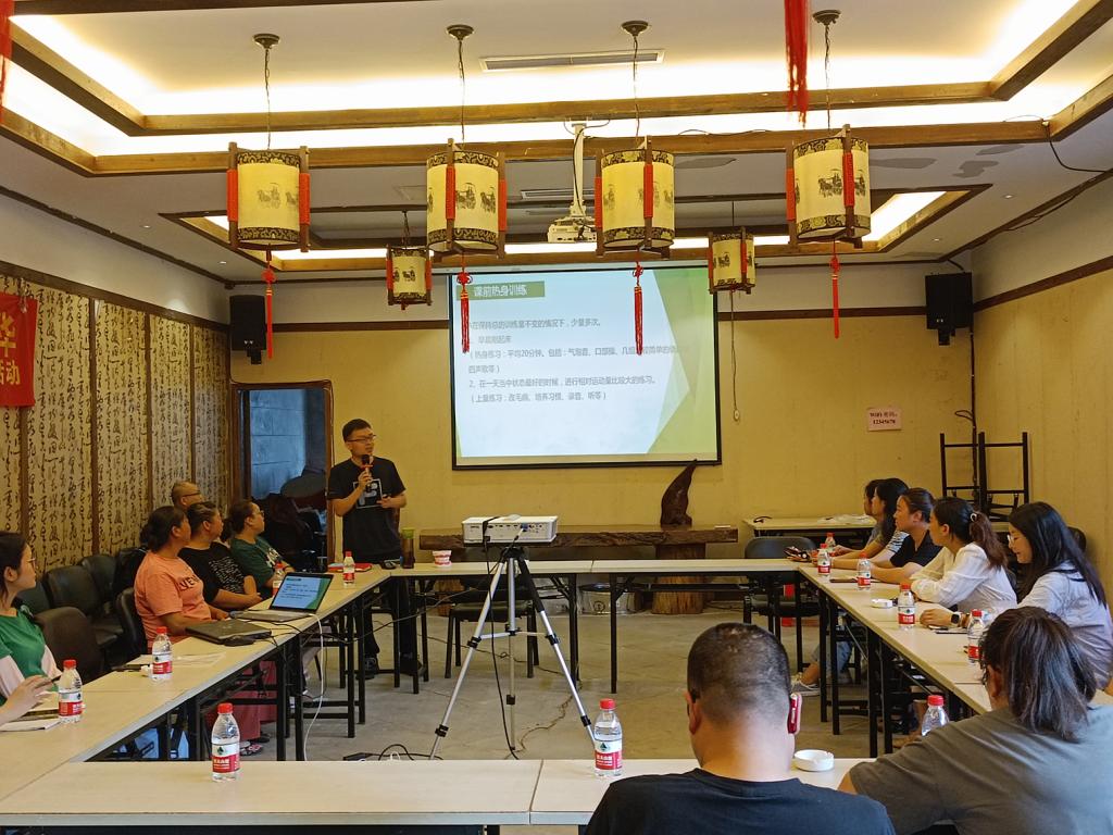 新葡的京集团35222vip专任教师谈华伟博士担任主讲人,他将理论与实践相结合,在讲授语音、声调、音韵等专业知识的同时,带领参会人员进行实践,并鼓励大家进行普通话展示并适时纠正。他指出:学习普通话,是在理解知识、掌握方法的基础上,全面地进行听、说、读、记的训练,养成动脑记、动口练、动耳听、动手查的良好学习习惯,从而提高自己的口语表达能力,练就一口标准、流利的普通话。