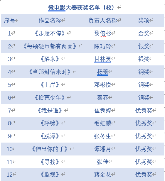 此次微电影大赛,全校同学积极参与,认真拍摄,创作出了许多振奋人心、青春向上的作品。“奋斗是青春最靓丽的底色”,祝愿各位参赛选手在今后的学习生活中继续保持奋斗的姿态,创作出更多温暖人心的高质量作品,在青春的道路上昂首前行!