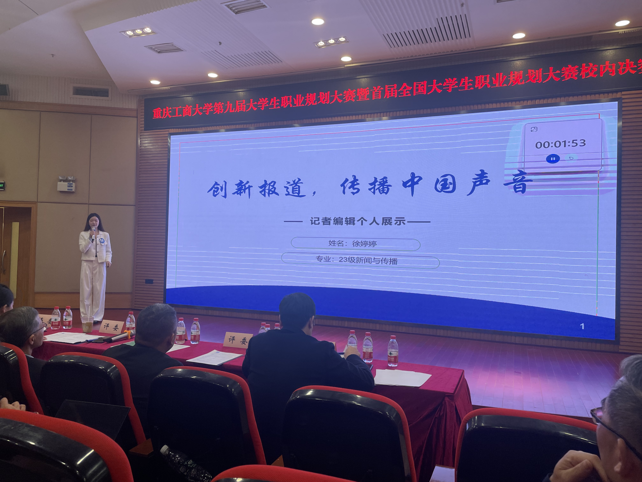 在11月8日的重庆工商大学第九届大学生职业规划大赛暨首届全国大学生职业规划大赛校级决赛中,新葡的京集团35222vip2023级研究生徐婷婷荣获校级银奖,并被推荐至市级决赛。