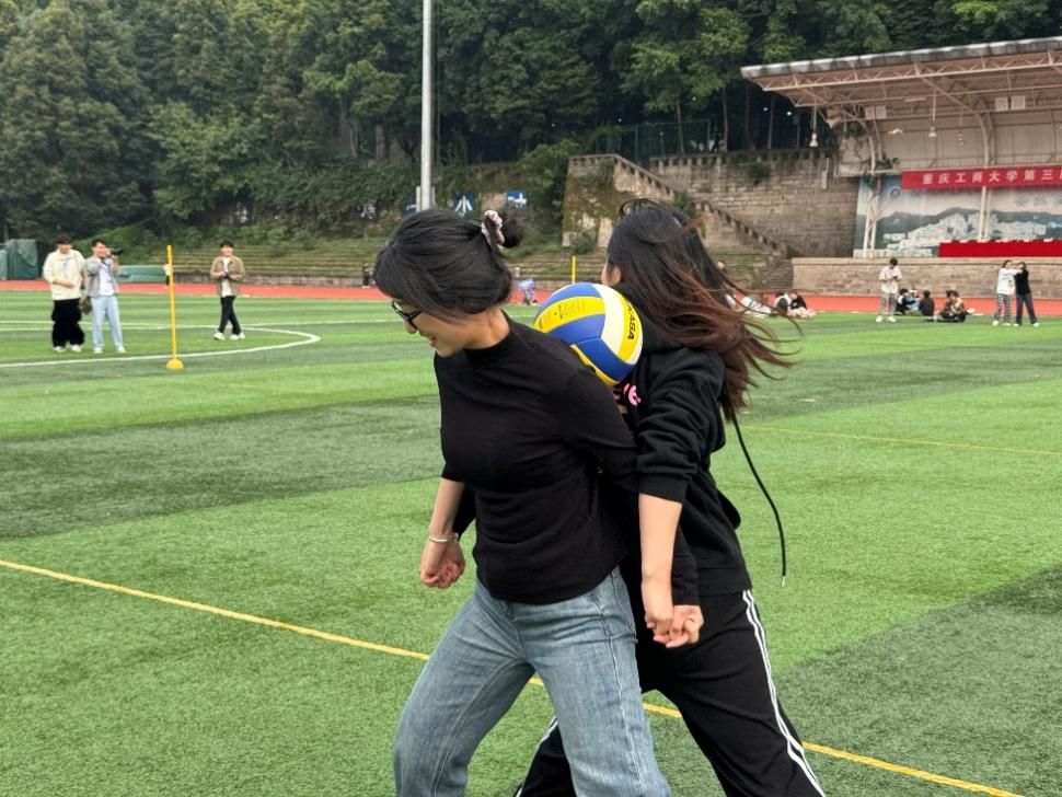 在背夹球项目开始前,新葡的京集团35222vip参赛选手在起点加油打气,观众的加油声与队友的鼓励声交织在一起,激励着每一位参赛者。