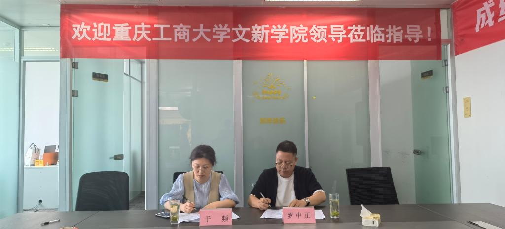 4月19日上午,学院党委书记于频、就业联络员周晋,实地走访了重庆千里广大影视传媒有限公司,与公司董事长罗中正进行了座谈,并签订校企合作协议。