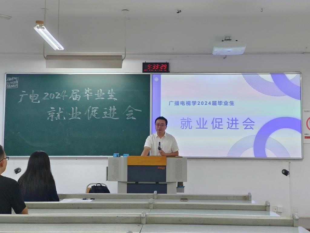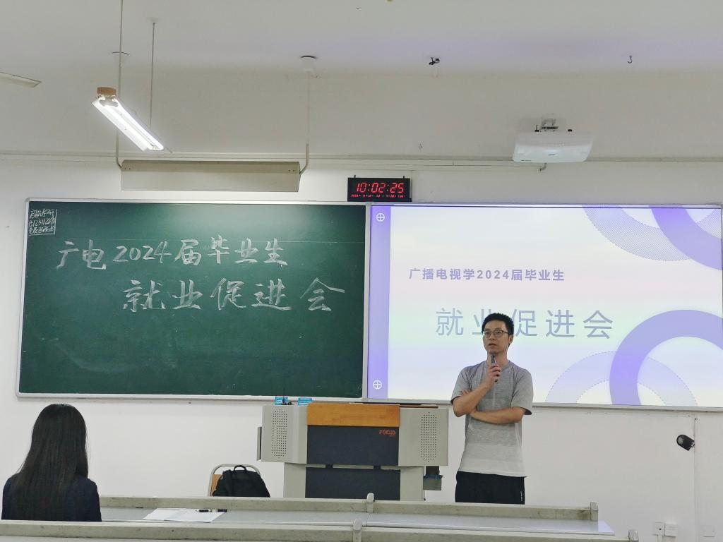9月12日,广播电视学系召开的就业促进会上,学院院长、副书记殷俊指出面对就业形势需要摆平心态,如果选择考公或者考研,要找好方法做好选择。针对毕业生就业阶段存在的问题,强调学传媒需要融入社会,加强与现实的衔接。朱东教授强调同学们要重视实习,并且在实习过程中一定要有目标,学有所获,好的实习是找到好工作的有力砝码。王烨老师建议同学们先就业再择业,要实现就业需要先丰满自己的羽翼,同时也希望同学们要对自己充满信心,不要妄自菲薄。孙文婷、周莹、陈绍富几位老师鼓励大家积极投递简历,参加面试。