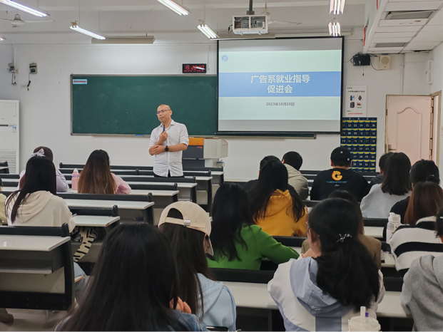 10月10日,广告学系召开的就业促进会上,学院党委副书记程元元介绍了如何应对不同的公司修改自己的简历,同时介绍了近期在学校发布的一些招聘信息,鼓励同学们多关注学院发布的公司招聘,抓住十月这个找工作的黄金时机,增加自己的就业机会。系主任王凌峰老师围绕就业形势、就业政策进行了分析解读,就毕业生关心的签约流程、找工作渠道等问题进行了详细讲解并给出了具体建议。