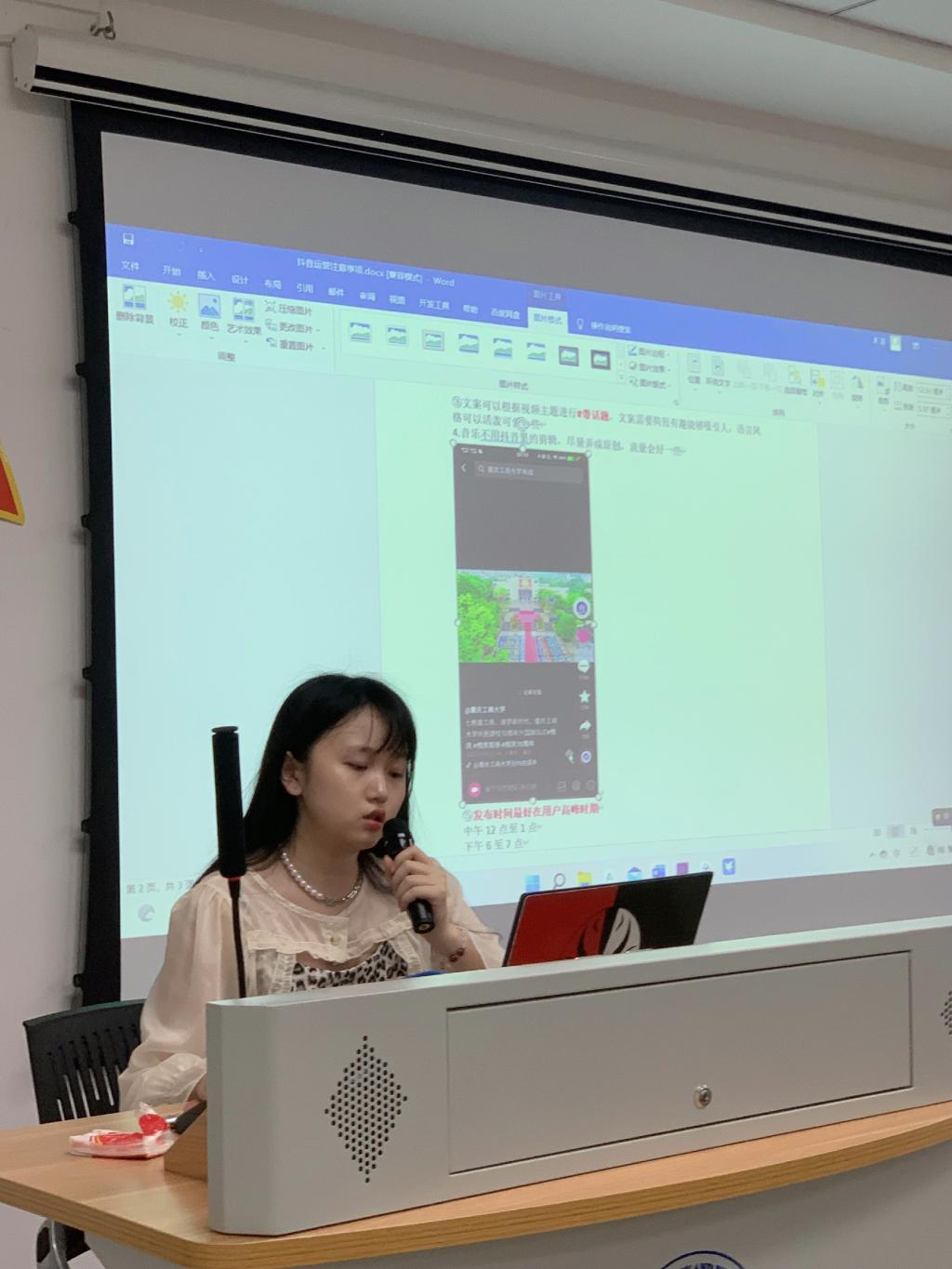 在王雨佳讲完以后,朱洁从视频拍摄和视频剪辑两方面继续为大家进行讲解。在视频拍摄方面,朱洁以抖音运营为例,向大家讲解了内容发布的审批流程和一些常见的评论区回复注意事项。她建议在拍摄视频中应该加强创意以获得更多播放量。在视频剪辑上朱洁着重讲Pr的相关技巧。她通过案例教学来向大家介绍了Pr的基础功能和快捷技巧。她提到,Pr的功能十分强大,它会帮助大家完成一个优秀、炫酷的视频作品。