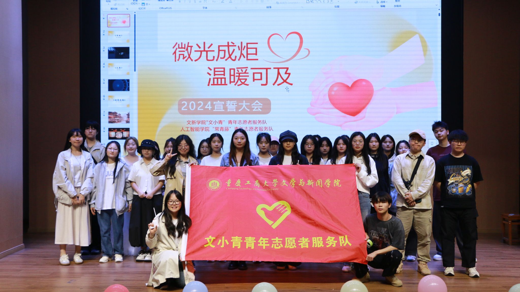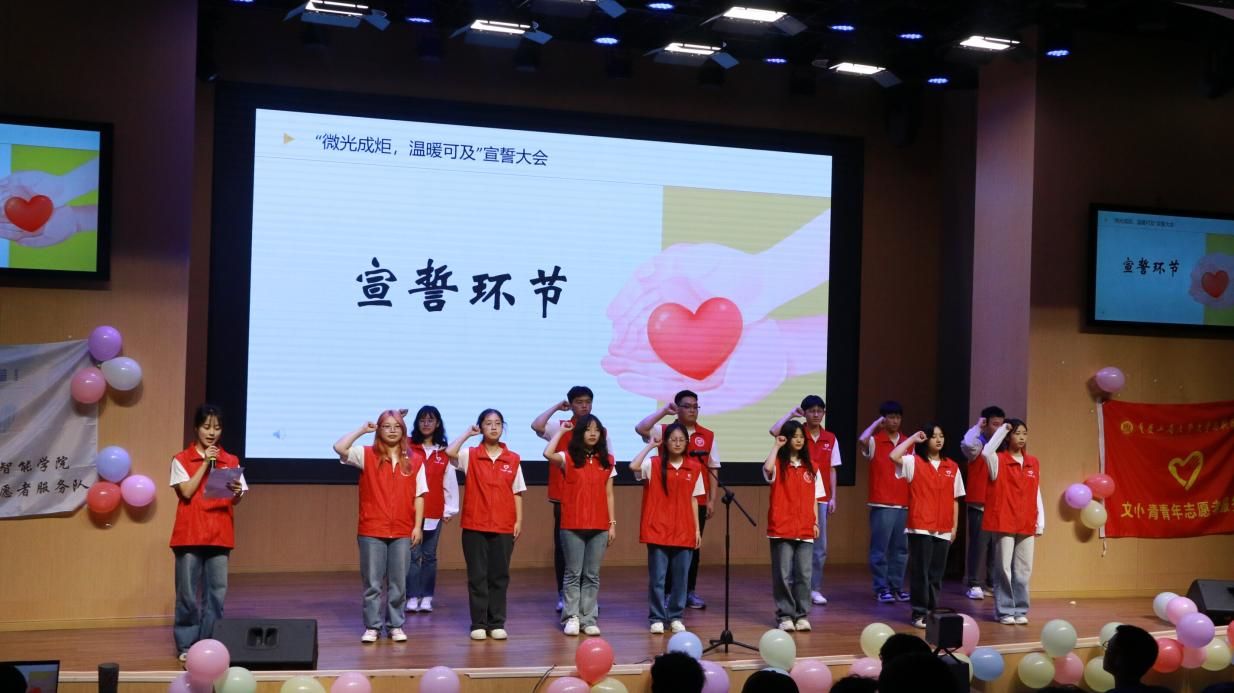 以青春为梦激发向善力量,在新时代志愿服务中谱绘青春图景,2024年4月21日晚,由新葡的京集团35222vip “文小青”青年志愿者服务队联合人工智能学院“小红帽”常青藤青年志愿者服务队共同举行“微光成炬,温暖可及”2024宣誓大会圆满结束。