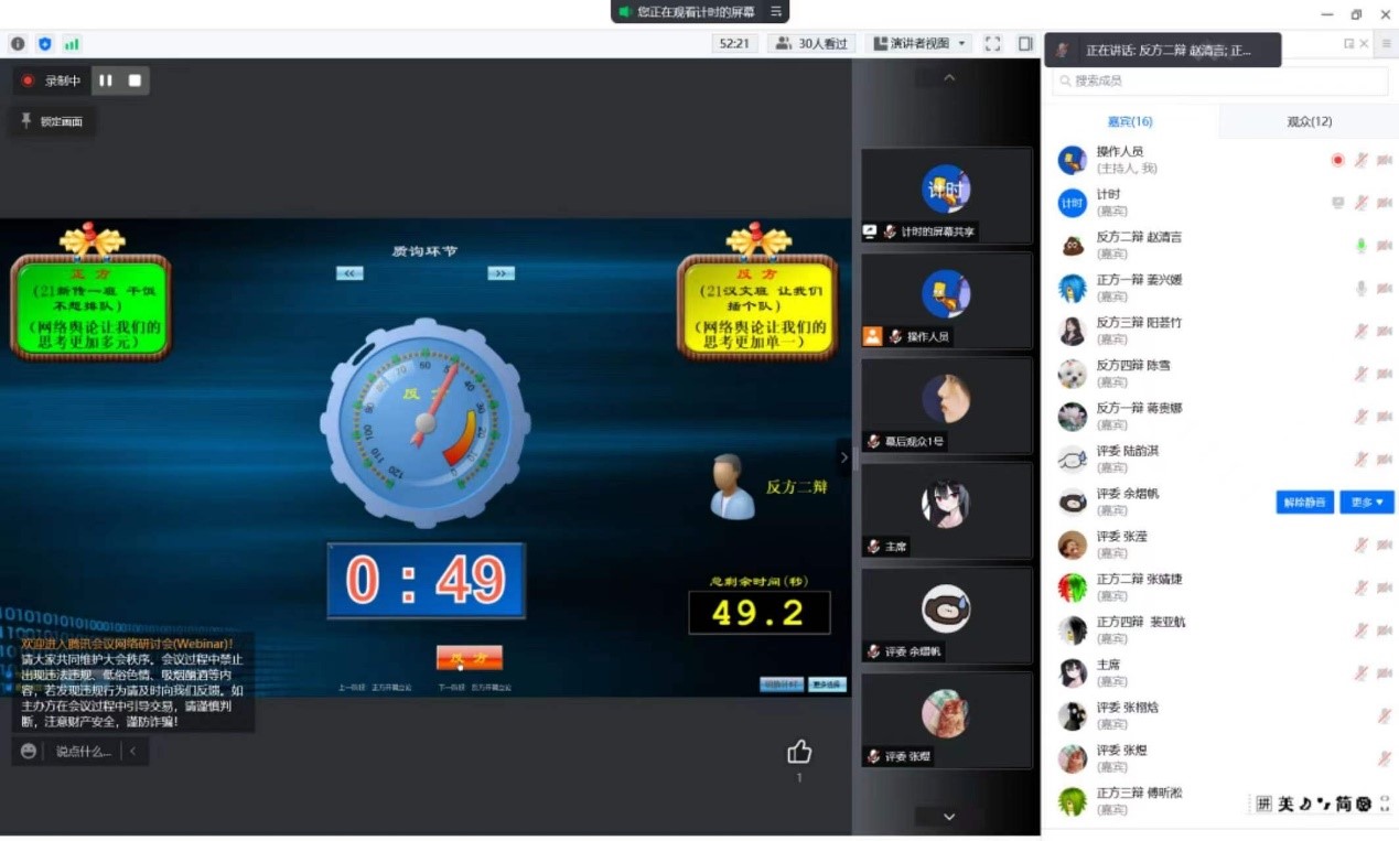 线上辩论赛进行现场及主要成员