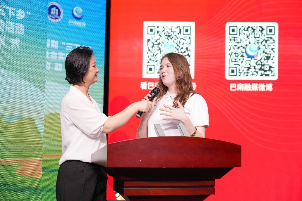随后,实践团中的乌克兰留学生林娜表示,此次“三下乡”活动为她提供了深入了解中国乡村文化和传统非遗的宝贵机会。作为一名国际学生,她希望通过自身努力,结合留学生的国际视野,积极参与到中国传统非遗文化的创新与传承工作中,努力把在巴南的所见所闻传播到世界各地,让更多人了解真实、立体的中国。
