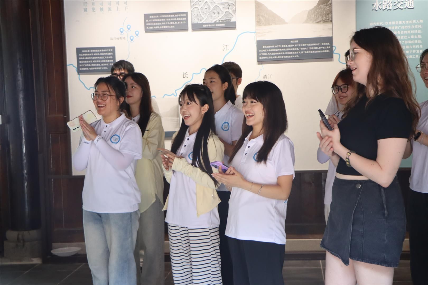 活动当天,传承团在木洞山歌市级传承人秦萩玥的带领下,参观木洞水驿博物馆,了解木洞镇作为长江水陆枢纽的历史及木洞山歌作为船工号子的起源和艺术特点。