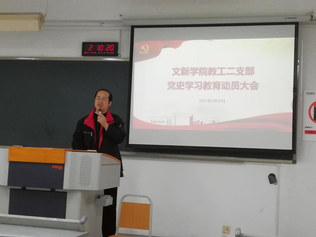 3月19日下午,新葡的京集团35222vip教工第二党支部在90625教室召开党史学习教育动员大会,正式启动了党史学习教育活动。