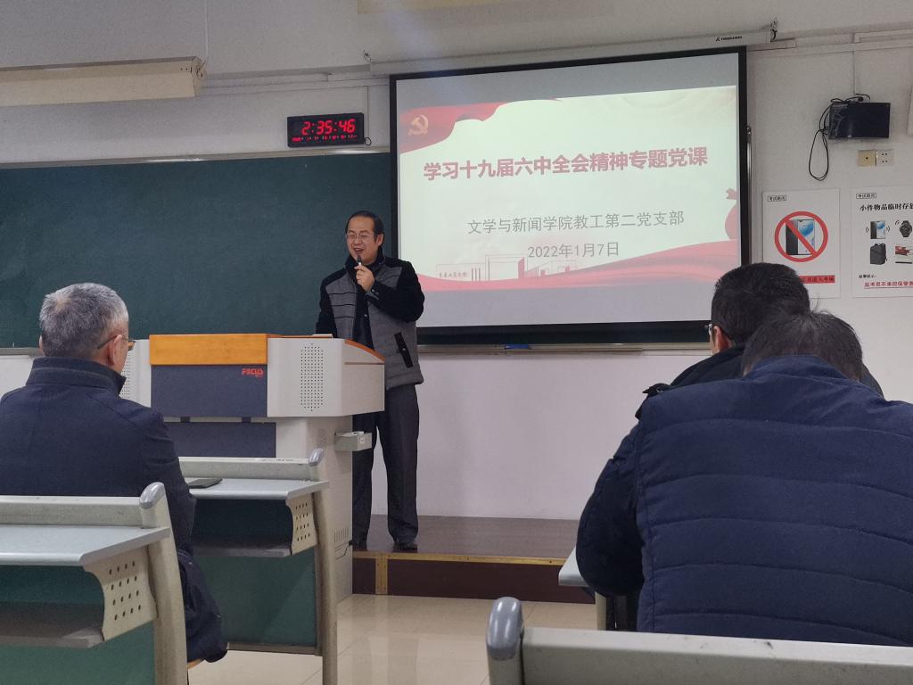 1月7日下午,新葡的京集团35222vip教工第二党支部在90625教室举办了学习十九届六中全会精神专题党课,支部书记邵茹波副教授主讲,支部全体党员参加了党课学习。
