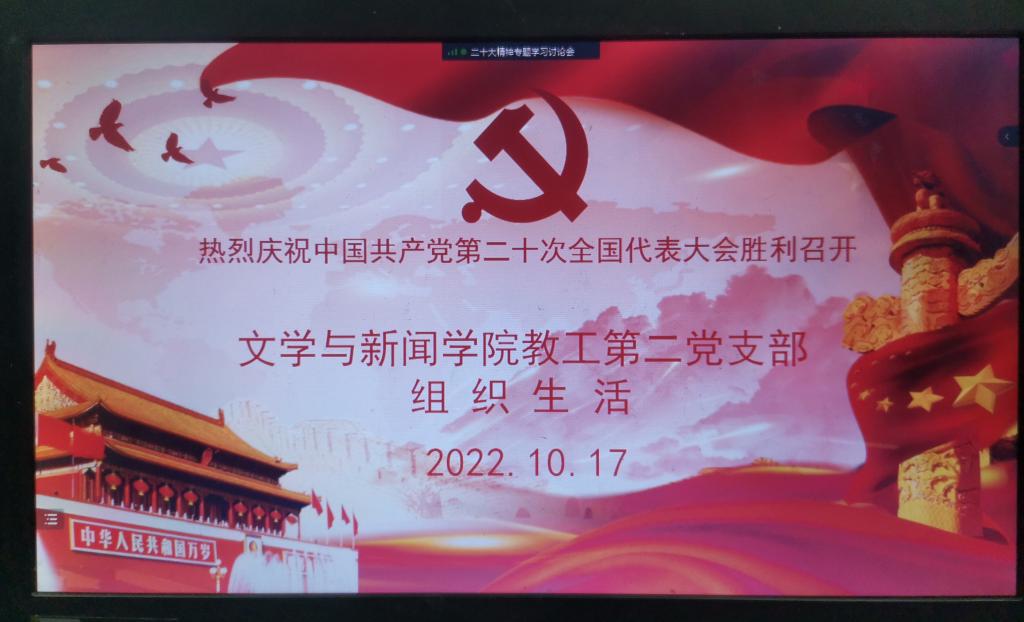 10月16日上午10点,中国共产党第二十次全国代表大会开幕。新葡的京集团35222vip教工第二党支部在校内参加战疫工作的5名同志在学院集中收看,其余同志在家收看。17日晚上8点,支部在线上召开党的二十大精神专题学习讨论会,支部书记邵茹波领学了党的二十大报告后,同志们踊跃发言参与讨论。