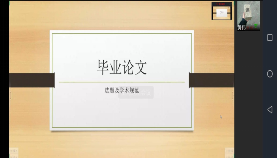 邓若伊教授强调了毕业论文的重要性,提醒同学们要规划好毕业论文的写作计划,保证高质量完成毕业论文的写作。黄伟老师就毕业论文的规范和要求进行了以下几个方面的讲解。第一,强调了毕业论文写作的态度问题,指出要严肃对待毕业论文的写作,要有严谨的学术态度,杜绝抄袭行为的发生。第二,讲到如何进行毕业论文的选题,可以充分结合专业要求与个人兴趣,选择切口小、难度适中的选题。第三,从论文写作的具体规范与要求入手,结合近年来学生毕业论文中出现的常见问题,如学术语言、论文结构、注释等问题做了生动易懂的解释和示例分析。讲座结尾,邓若伊教授总结发言,对黄伟老师表示感谢,并希望同学们认真对待毕业论文的写作,预祝同学们毕业顺利。同学们对两位老师的指导和帮助表示了衷心感谢。