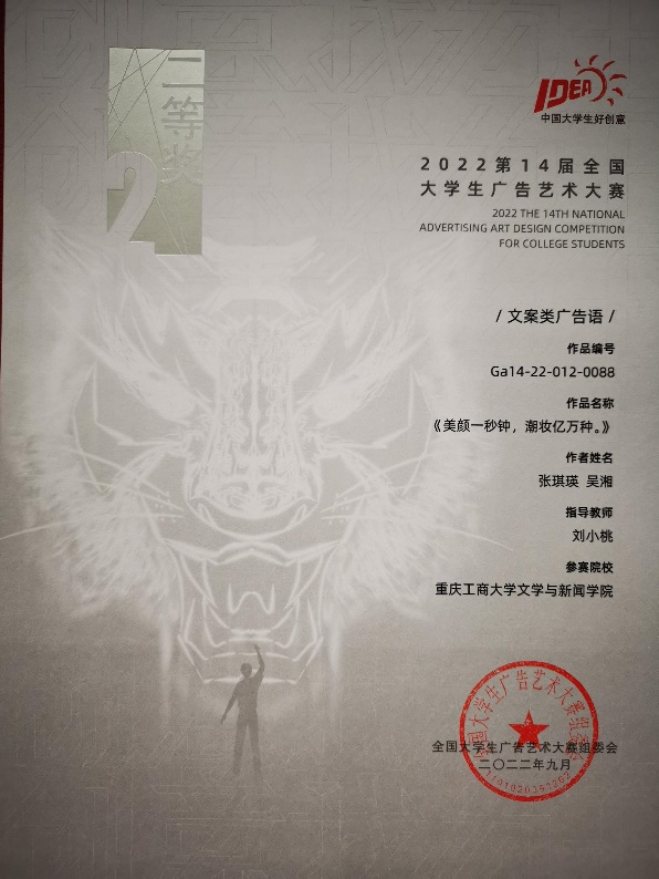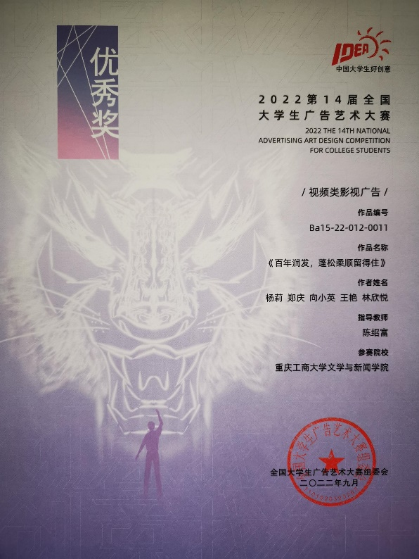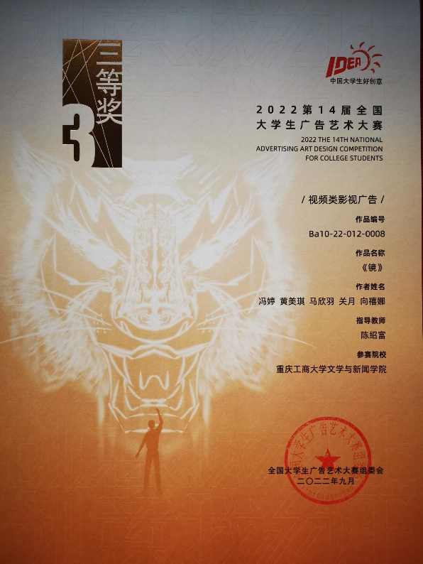 全国大学生广告艺术大赛以“促进教改、启迪智慧、强化能力、提高素质、立德树人”为竞赛宗旨,是规模大、水准高、影响深的全国性高校文科竞赛。近日,第15届全国大学生广告艺术大赛结果已揭晓,新葡的京集团35222vip再获佳绩,获得全国赛区奖项4项,其中二等奖2项;获得重庆赛区奖项57项。