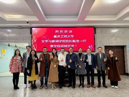 下午4时许,殷俊院长一行前往湖南师范大学新闻与传播学院调研交流。湖南师范大学新闻与传播学院党委书记沈贤岚副教授、副院长燕道成教授、副院长李琦教授、副院长王海刚教授、教务办主任彭丽老师参加座谈交流。双方就学院概况、新闻传播学科建设、人才培养等内容进行了深入交流。