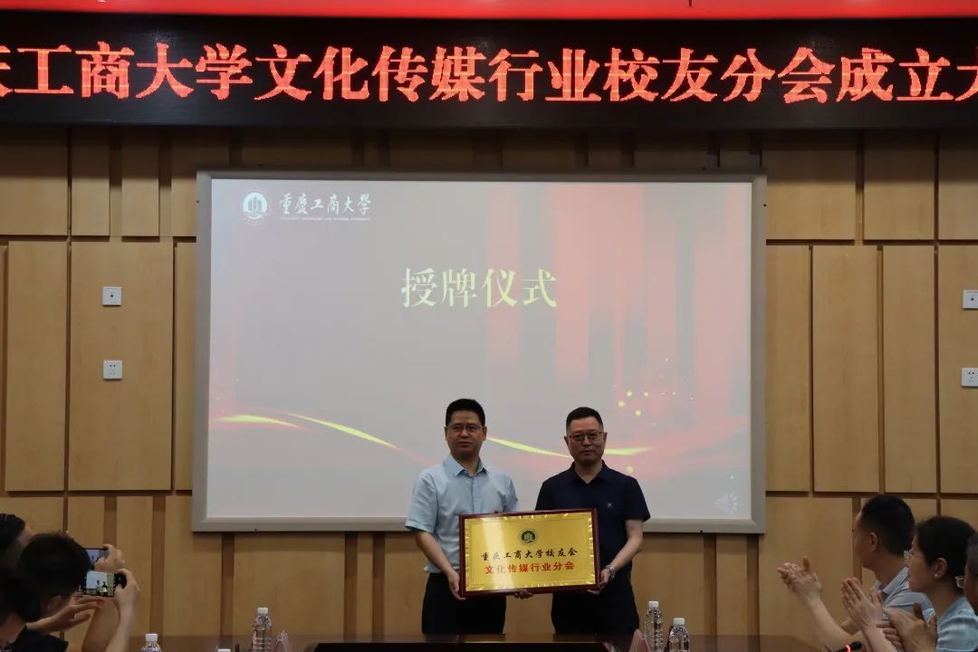 会议开始,08级校友唐礼代表文化传媒行业校友分会筹备组作筹备工作报告,何军宣读《关于同意成立重庆工商大学校友会文化传媒行业分会的批复》。会议审议通过了《重庆工商大学校友会文化传媒行业分会管理办法》和《重庆工商大学校友会文化传媒行业分会第一届理事会建议名单》,与会领导为文化传媒行业校友分会理事成员代表颁发聘书。