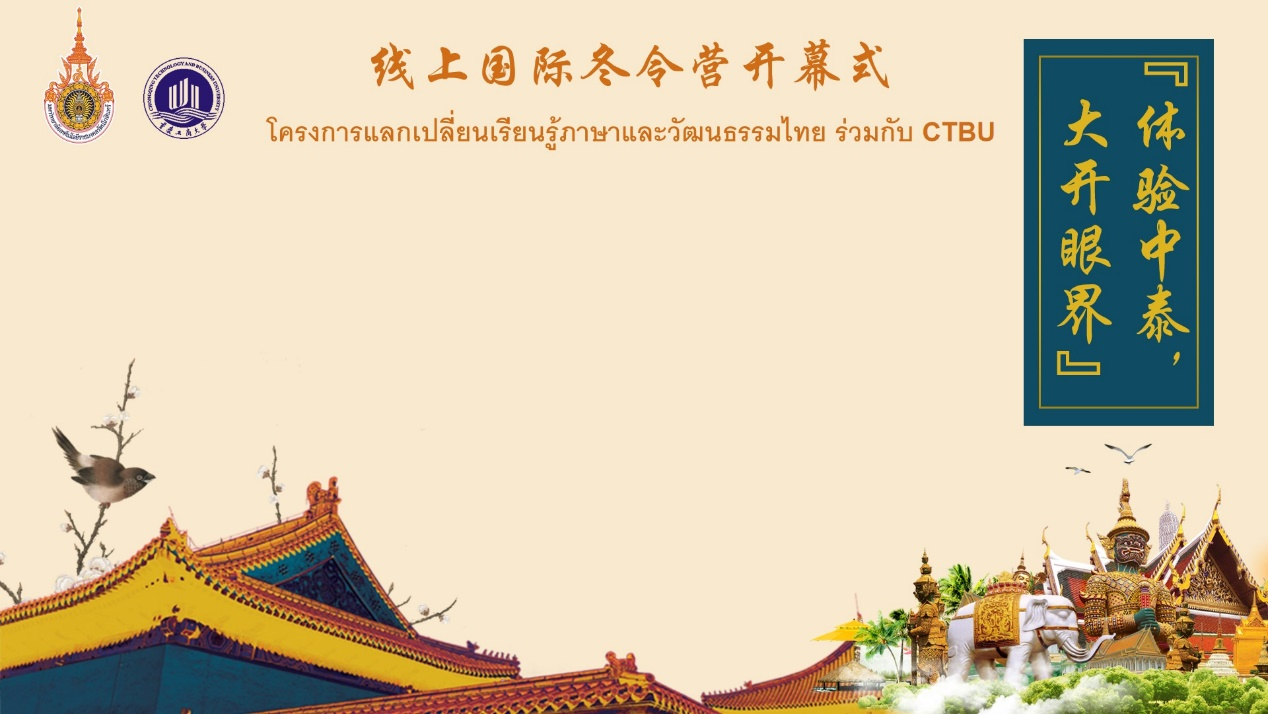 10月24日,由重庆工商大学与泰国乐得纳可信皇家理工大学合作举办的“体验中泰•大开眼界”线上冬令营正式拉开了序幕。本次活动旨在增进中泰学生的交流、拓宽学生的国际视野、促进中泰文化的沟通。冬令营开幕式于当日举行,采用了线上会议的方式。出席会议的有新葡的京集团35222vip国际合作与交流处、留学生学院张轶处长(院长)、刘茜副处长、泰国乐得纳可信皇家理工大学工商学院Ajarn Watcharapol Boonsomboon院长、新葡的京集团35222vip郑笑眉副院长,以及国际处、留学生院、新葡的京集团35222vip和泰国乐得纳可信皇家理工大学工商学院师生代表。开幕式由国际处杜晓老师主持。