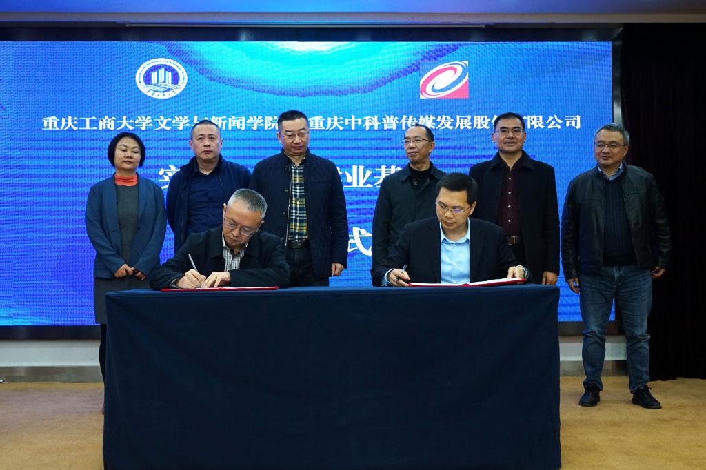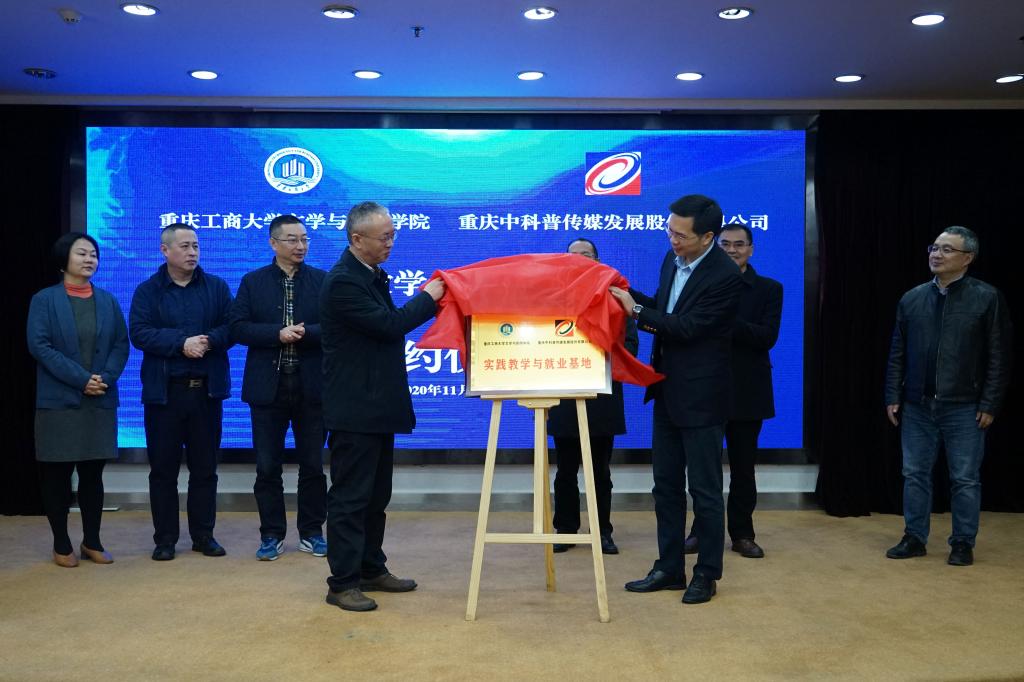 签约仪式上,王仕勇院长代表新葡的京集团35222vip与重庆中科普传媒发展股份有限公司董事长金奇签订了《共建实践教学及就业基地协议书》,并为实践教学及就业基地揭牌。