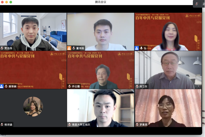 11月28日,“人民共和国党报论坛”第十八届(2021)年会在中国传媒大学隆重举行。此次研讨会由中国传媒大学新闻学院、中国传媒大学党报党刊研究中心与河北大学新闻传播学院联合主办。会议邀请了人民日报社副总编辑崔士鑫,《求是》杂志社副总编辑罗素英,新华日报社党委副书记兼总编辑顾雷鸣,以及教育部社会科学委员会委员兼新闻传播学科召集人、广西大学新闻与传播学院院长郑保卫,中国人民大学新闻学院教授、马克思主义新闻观研究中心主任邓绍根,中国传媒大学党报党刊研究中心副主任金梦玉等多位新闻业界、学界知名人士做论坛主题演讲。新葡的京集团35222vip新闻学硕士研究生贾浩伟应邀参加第一分论坛进行研讨交流,