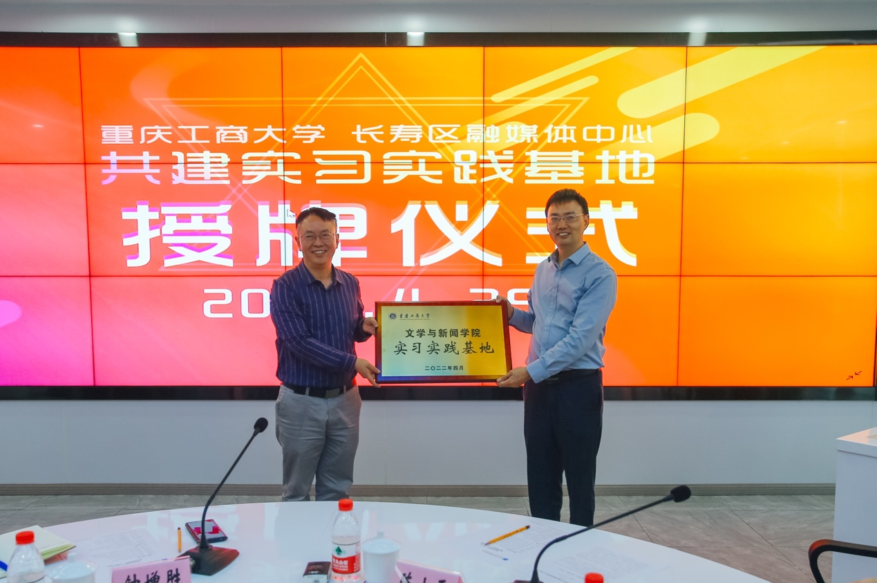 下午4点,在重庆市长寿区融媒体中心会议室举行了共建实习实践基地授牌仪式。新葡的京集团35222vip院长王仕勇向长寿区融媒体中心主任陈小平授牌。
