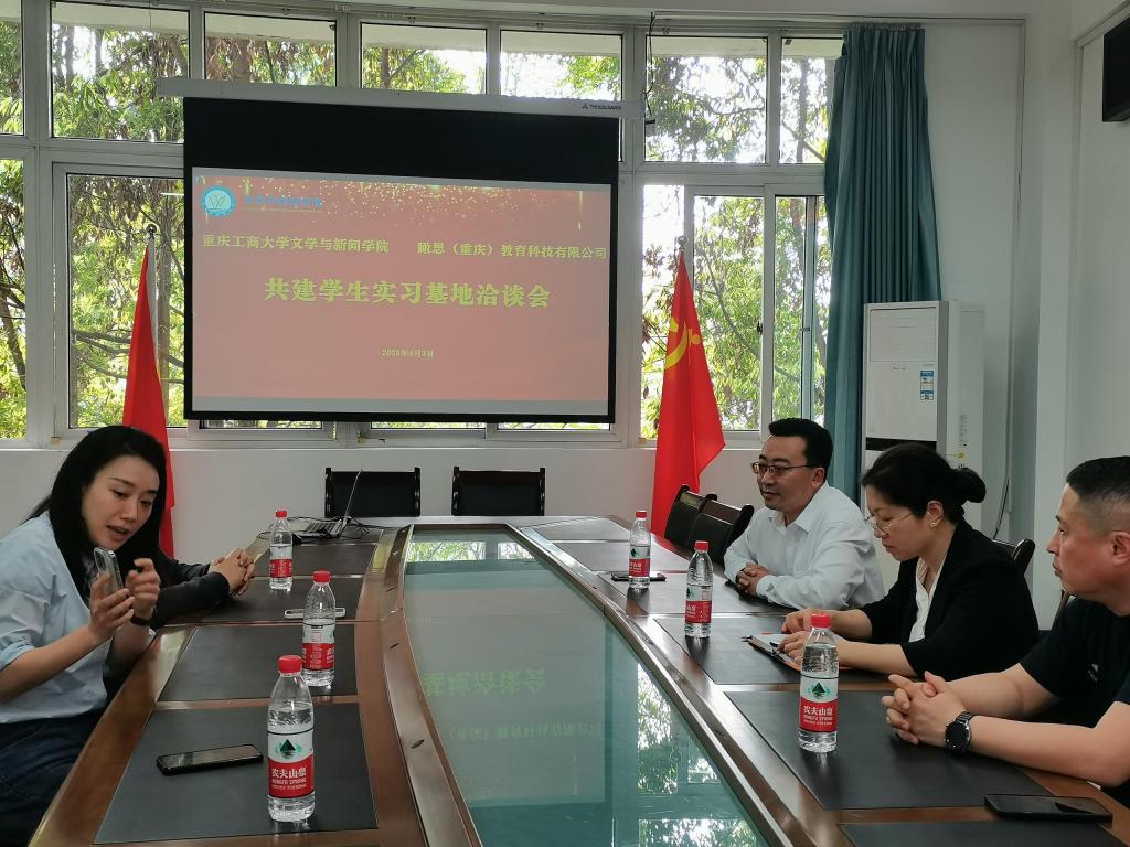 4月3日,重庆市青联新闻出版与新媒体界别副主任 徐翔携瞰思(重庆)教育科技有限公司一行到新葡的京集团35222vip洽谈学生实习基地建设合作相关事宜。学院党委书记于频、院长殷俊、党委副书记程元元参加洽谈会。