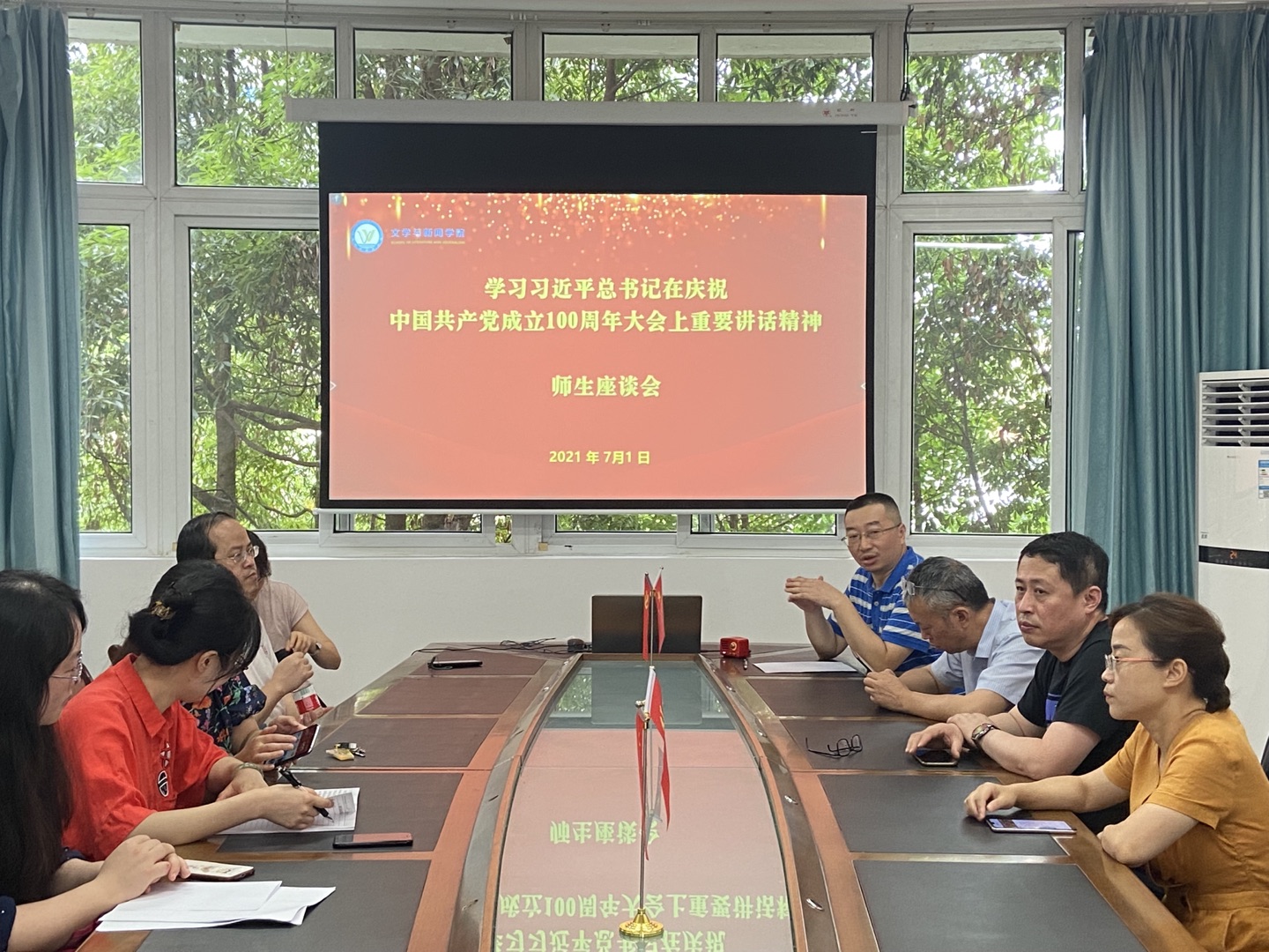 通过观看直播,学院师生深受鼓舞、精神振奋。座谈会上,学院师生积极踊跃发言,围绕“习近平总书记在庆祝中国共产党成立100周年大会上的重要讲话精神”、“观看庆祝中国共产党成立100周年大会的感受与收获”、“如何成为一名合格的新闻传播从业者”、“我印象最深刻的关键词”等主题分享了自己的观后感及收获。