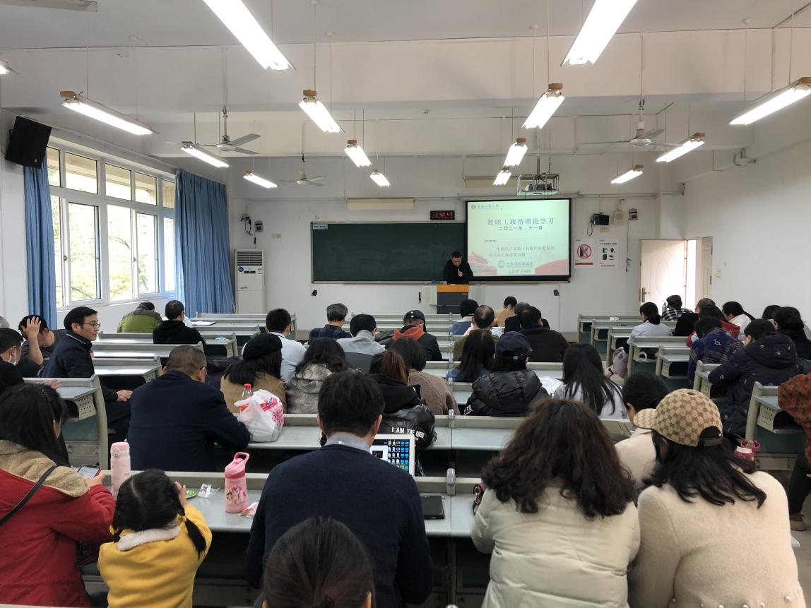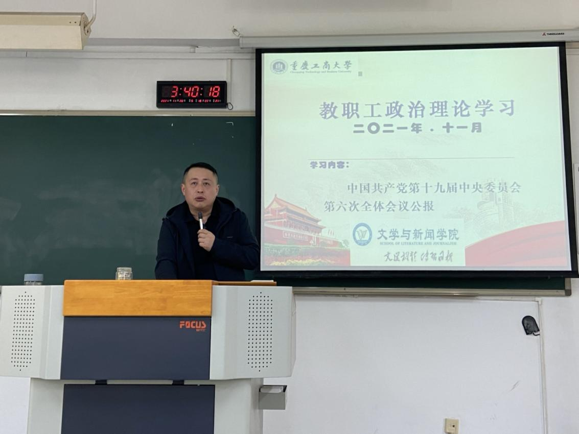 11月26日下午,新葡的京集团35222vip在慧智楼90625召开教职工政治理论学习会,集中学习党的十九届六中全会精神。全院教职工参加了专题学习会,会议由学院党委书记李华平主持,学院党委副书记程元元领学。