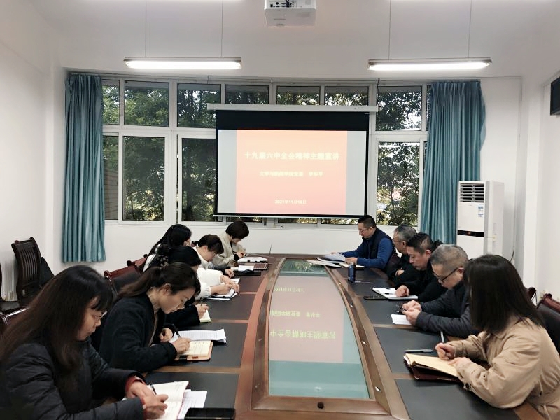 11月19日上午,文学与新闻学院党委召开理论学习中心组(扩大)会议,传达学习党的十九届六中全会精神。学院全体党委委员、支部书记、科级干部和行政人员参加了会议。会议由分党委书记李华平主持。