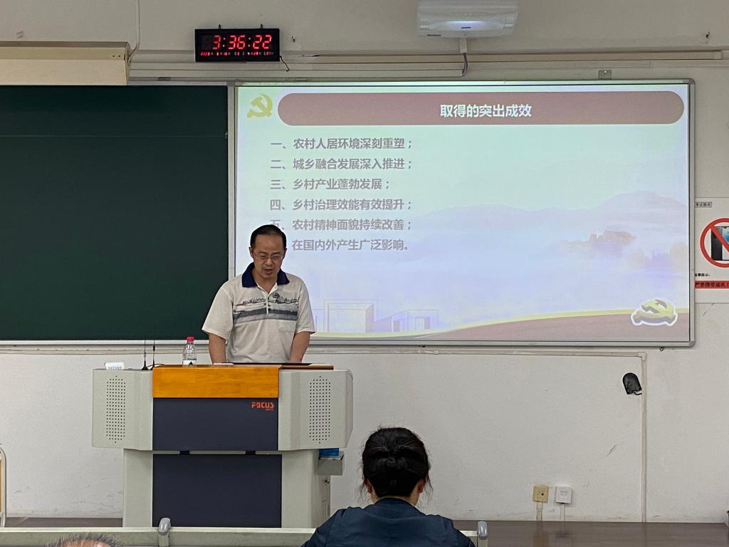 各位同志纷纷讲述了自己的学习心得:学习了习近平总书记给中国农业大学科技小院的同学们的回信,我们要聚焦党和国家对青年的要求、对人才的要求,引领学生听党话、跟党走,传承红色基因,始终奋进在新时代前列,以实现中华民族伟大复兴为己任,不断增强志气、骨气和底气,不负韶华,不负时代,不负人民;学习了习近平总书记在听取陕西省委和省政府工作汇报时的重要讲话精神,随着城市资源要素向乡村流动,广阔乡村大有可为,我们应引导学生看到未来乡村发展的机会,让学生发挥所学促进乡村一二三产业融合,促进乡村文化发展和城乡融合,扎实推进共同富裕;学习了习近平总书记在中共中央政治局第五次集体学习时的重要讲话精神,教育功利化倾向不是一朝一夕形成的,扭转教育功利化倾向也不可能一蹴而就,需要多措并举,并坚决执行,最终才能达到“形成健康的教育环境和生态”的目的;学习了习近平总书记重要文章《中国式现代化是中国共产党领导的社会主义现代化》,作为人民教师,我们也应以主人翁精神满怀热忱地投入到中国式现代化教育事业的发展之中,以课程思政的力量培养与召唤我们的青年学生志存高远、脚踏实地、努力学习、团结奋斗,逐渐成长为未来全面建设社会主义现代化国家的中坚力量;“千万工程”持之以恒、久久为功,值得我们学习借鉴,在乡村振兴、共同富裕进程中还有很多值得探讨的课题,比如如何协调城乡、产业、生态、人口、人才、教育、文化等方方面面的发展,这为我们高校的人才培养、课程设置、实训实践提供了丰富的资源,我们要充分运用起来。
