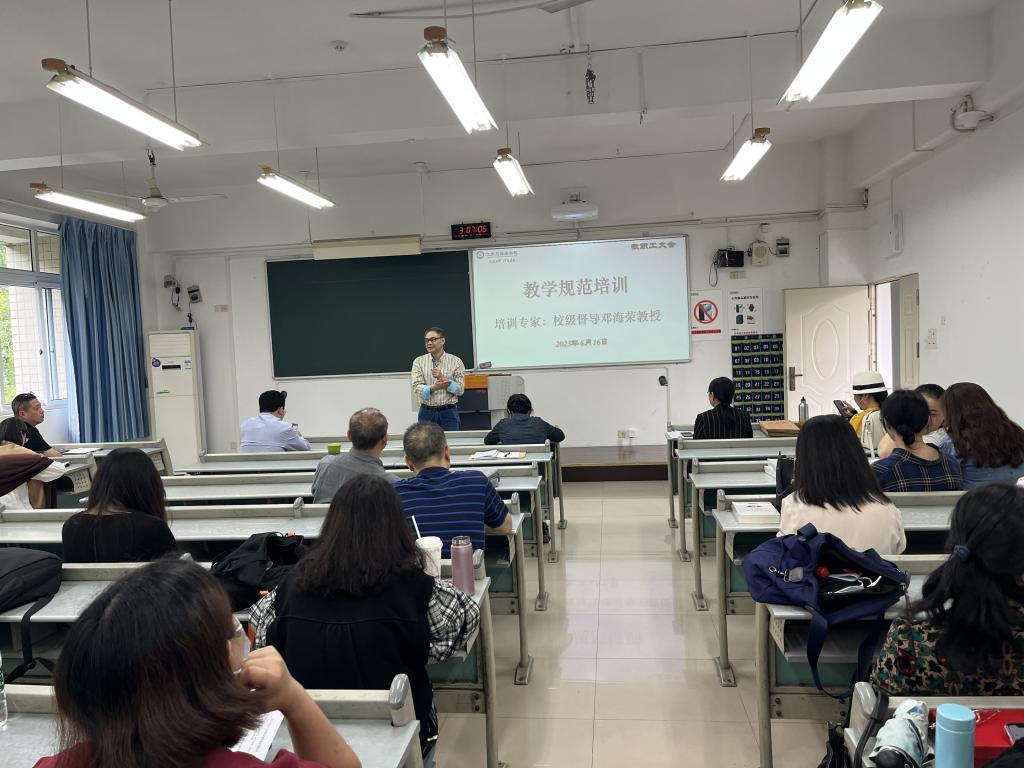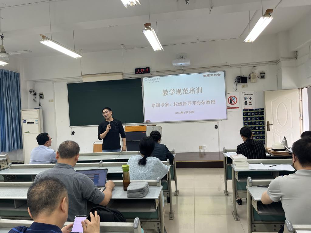 为深入推动学习贯彻习近平新时代中国特色社会主义思想主题教育,结合本科教育教学审核评估自评自建,进一步强化试卷与毕业论文(设计)的教学管理,促进考试试卷和毕业论文(设计)质量提高,新葡的京集团35222vip于2023年6月16日下午邀请了校级督导专家邓海荣、唐德正为全院教师进行了教学规范培训。
