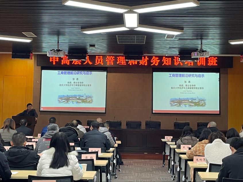 2021年12月11日,由中科普传媒发展股份有限公司主办、新葡的京集团35222vip承办“中高层人员管理和财务知识培训班”的第五次课程于重庆工商大学图书馆会议中心多功能厅召开。本次课程旨在加强中高层人员自身的业务素质学习、提升管理水平。会议参会人员有重庆大学张勇教授、重庆工商大学崔飚教授、中科普集团的中高层人员。
